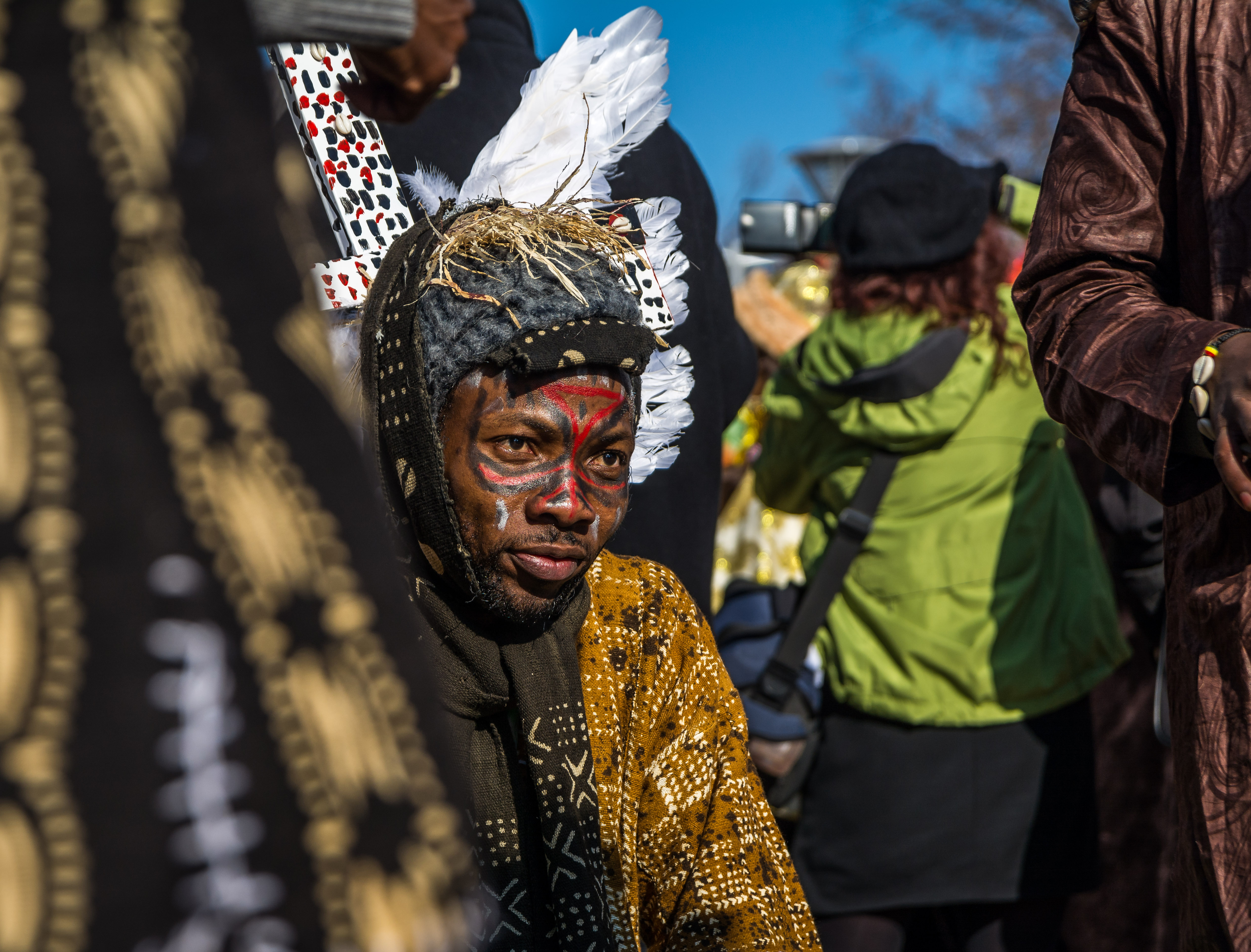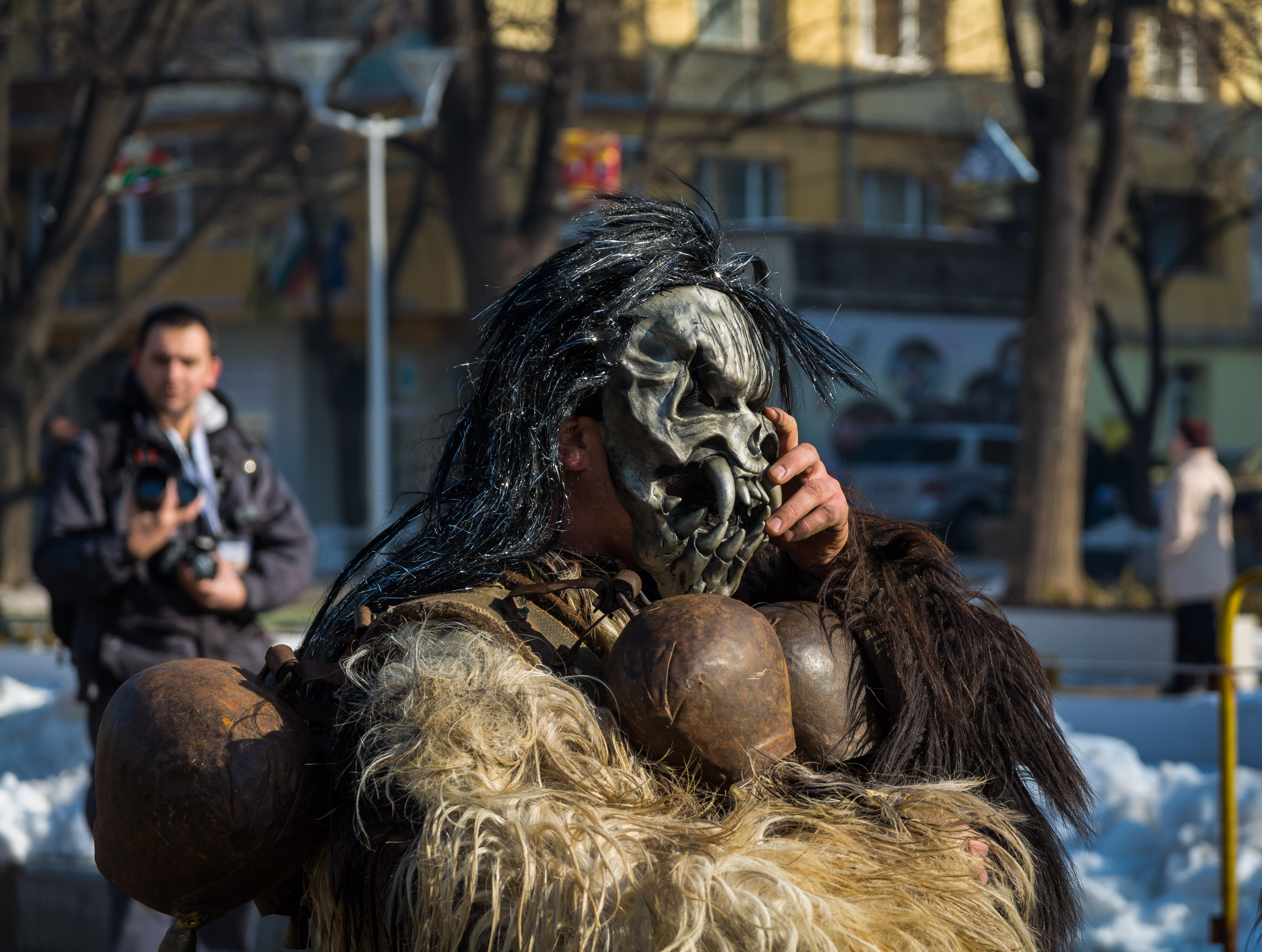 Когато пристигнахме на Сурва 2016 Перник и достигнахме пътеката, по която преминаваха всички сурвакарски групи, видяхме че има заграждения с въжета и огради и полицаи, които патрулиха от вътрешната страна на пътеката, за да не влиза публиката и да притеснява сурвакарите. На тази пътека освен групите вървяха и доста фотографи, които снимака неуморно костюмите и маските. Всички тези фотографи имаха някакъв сорт акредитация и можеха свободно да се движат напред назад измежду групите и полицаите. И тъй като решихме в последният момент да отидем, нямах възможността да се сдобия с въпросната акредитация. Но това не ми попречи да направя страхотни кадри.